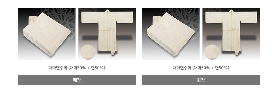 | 수의 | 대마 면 수의 제공(대마 50% + 면 50%) |